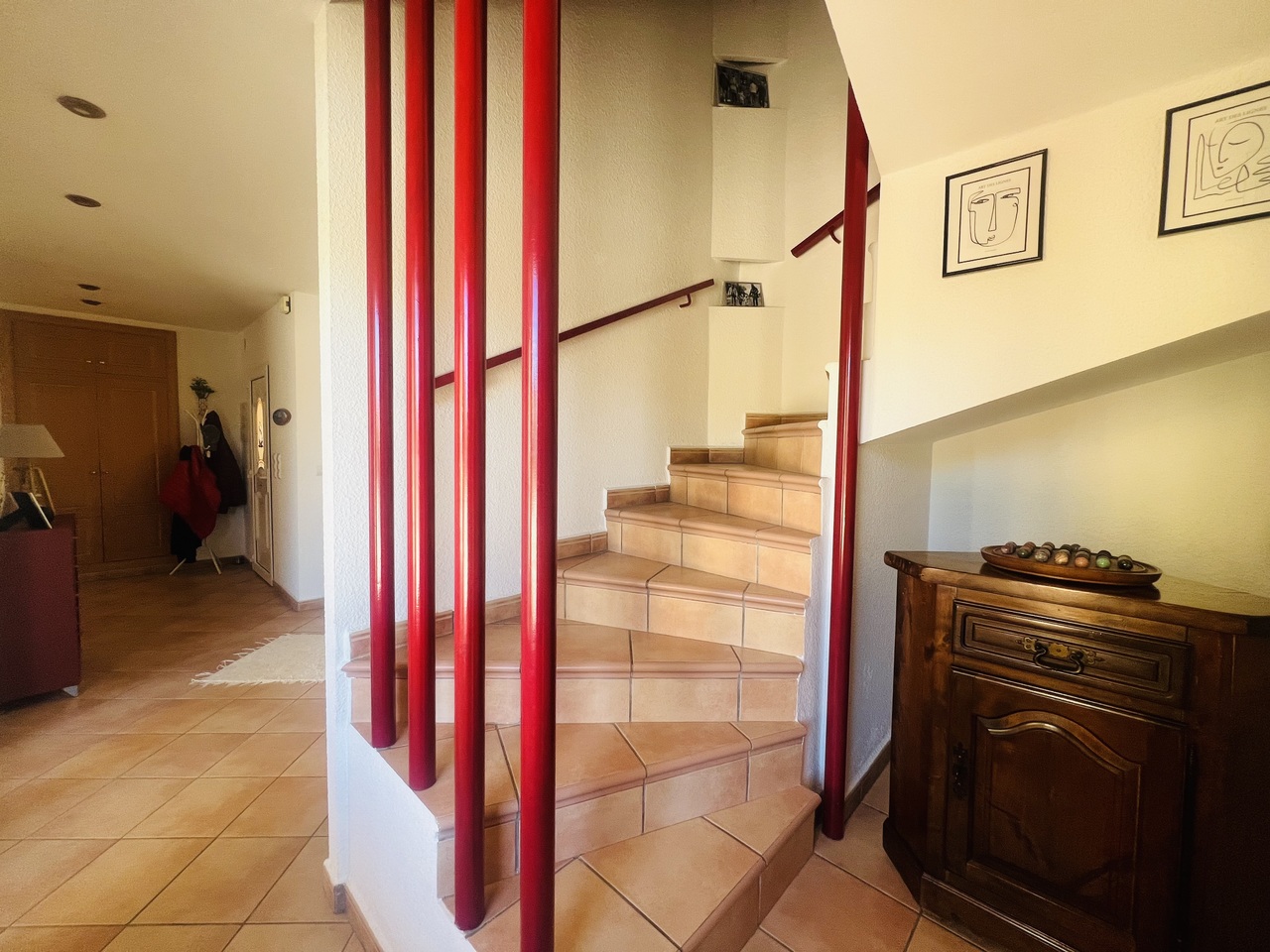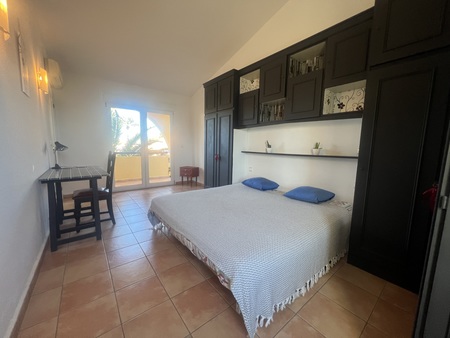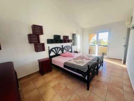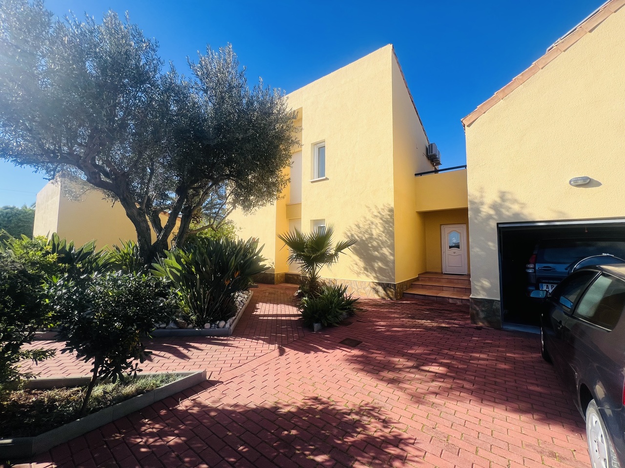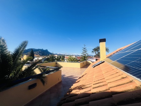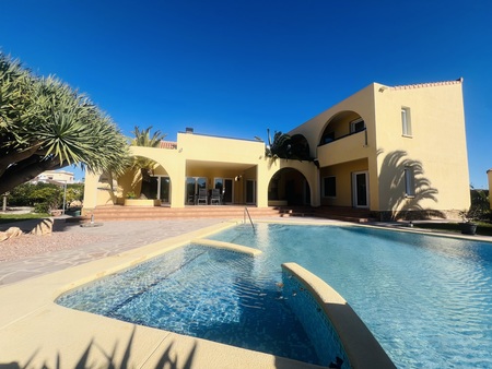 Cette villa élégante et moderne est située à seulement 200 mètres de la mer et de la magnifique plage d'Almadrava. Située dans un quartier calme, mais à proximité des supermarchés et des restaurants, la propriété offre un cadre de vie exceptionnel qui allie à la perfection confort et tranquillité. La villa est située sur un terrain généreux d'environ 1 800 m² et impressionne par sa conception bien pensée et ses nombreuses caractéristiques de haute qualité. En plus de la maison principale, la propriété comprend un bâtiment de stockage séparé d'environ 25 m² pour les outils et le matériel de jardinage, un espace barbecue dédié, un jardin spacieux avec des arbres fruitiers et d'ornement, et une grande piscine, idéale pour la détente et les loisirs. La villa offre une surface habitable d'environ 317 m² et est répartie sur deux étages. Le rez-de-chaussée comprend un salon et une salle à manger lumineux et spacieux, une cuisine entièrement équipée, une chambre avec salle de bains attenante, un bureau, une buanderie et une grande terrasse couverte. Un escalier intérieur mène à l'étage supérieur, qui comprend deux chambres supplémentaires, deux salles de bains et une terrasse couverte. De cet étage, on accède également à la terrasse sur le toit, qui offre un solarium ouvert et deux pièces de rangement pouvant facilement être transformées en salle de sport ou en bureau. Depuis la terrasse sur le toit, vous pouvez profiter d'une vue imprenable sur les montagnes de la Segaria. La propriété est équipée de commodités modernes, notamment de panneaux solaires, d'un chauffage au sol dans toutes les pièces, de volets électriques et de fenêtres à double vitrage, garantissant un haut niveau de confort et d'efficacité énergétique. Cette villa est idéale comme maison de vacances familiale ou comme résidence confortable pour vivre toute l'année. La propriété est vendue entièrement meublée.